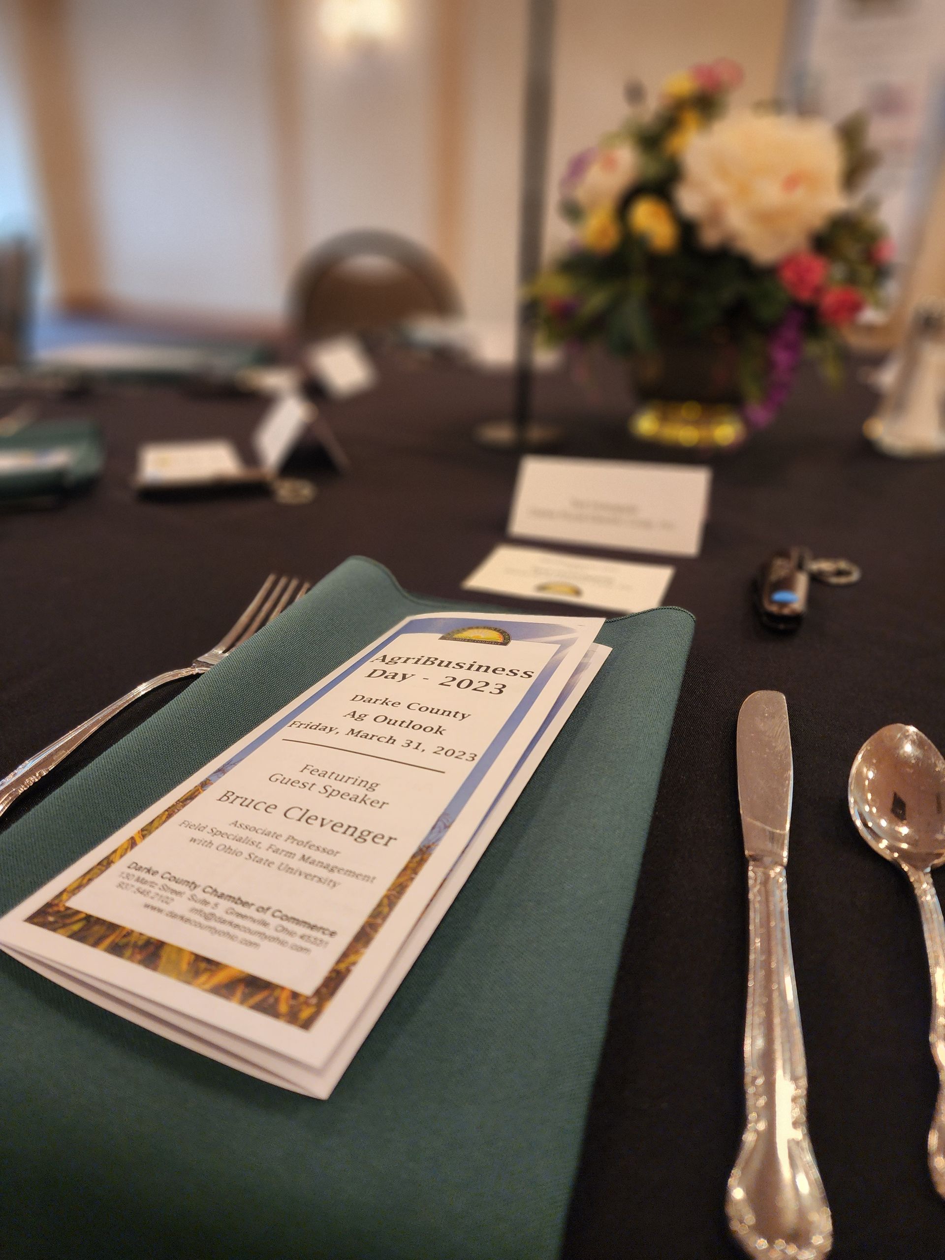 The Darke County Chamber of Commerce gratefully acknowledges the invaluable support from our sponsors and supporters whose generosity has made the 2024 Ag Awards a reality: Event Sponsor: GNB Banking Center; Gold Sponsors: Daily Advocate, Darke Rural Electric Cooperative, Cooper Farms, Spirit Emergency Medical Services, Park National Bank, and The Andersons; Silver Sponsors: Darke County Farmer’s Union, Edison State Community College, EverHeart Hospice, Farm Service Agency, First Choice Realty, Fry & Co. Graves-Fearon Agency Nationwide, Holiday Inn Express, Jon Coomer Investment Management, King’s Poultry Farm, Lawn Plus LLC, Moriroku Technology North America, Inc., Poeppelman Materials & PEPCON, Premier Crop Insurance, ProMedica 360Health, Theodore O. Finnarn, Ag Law.